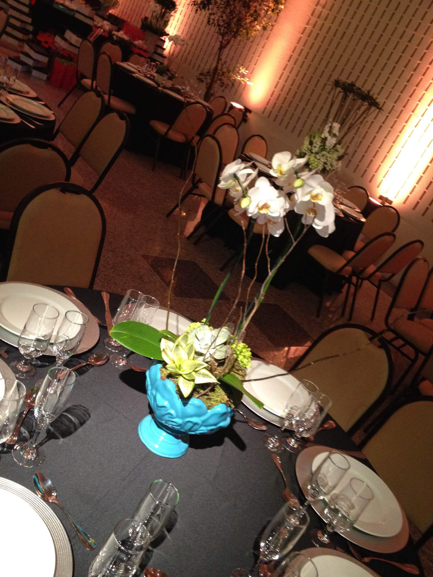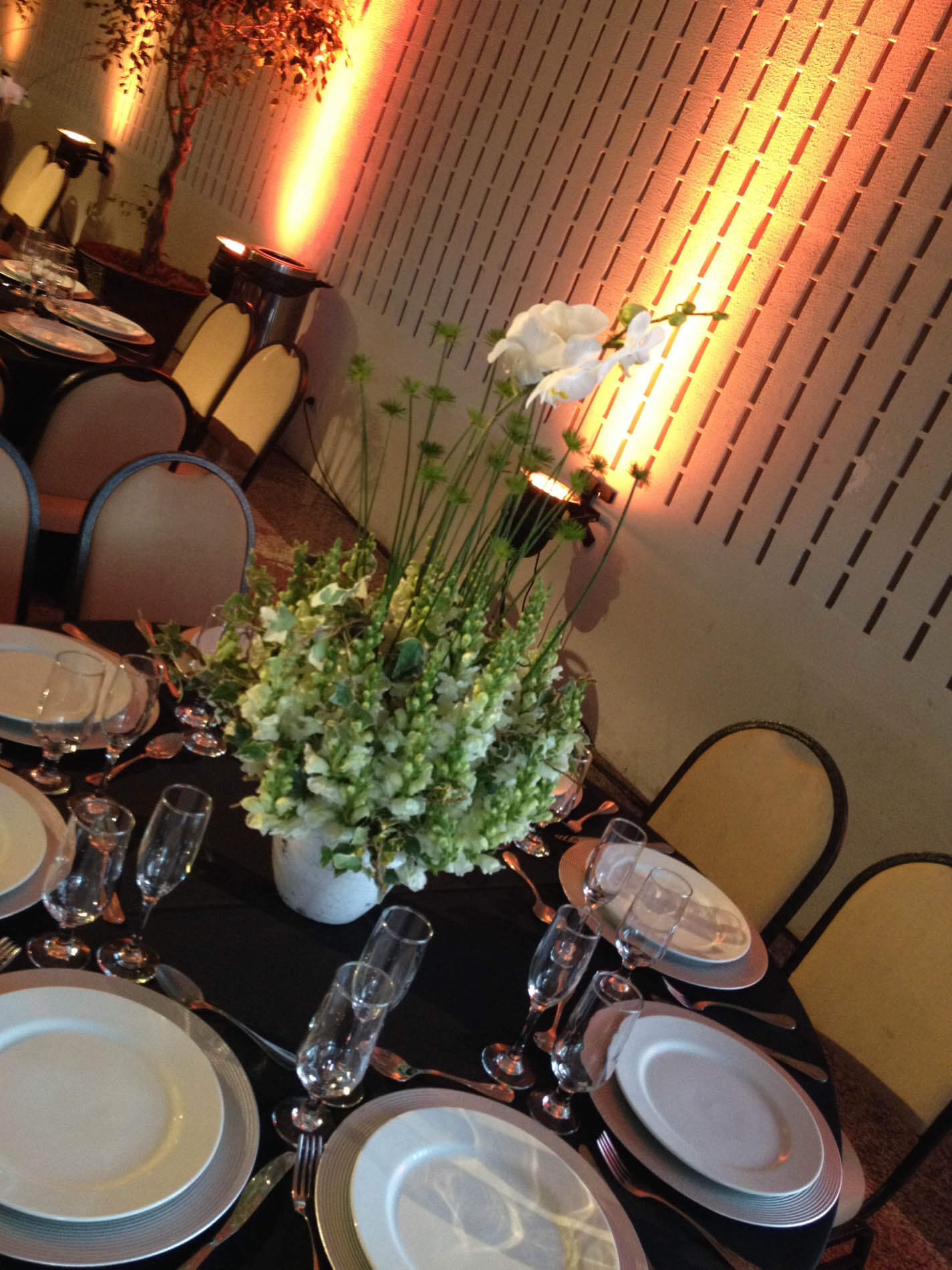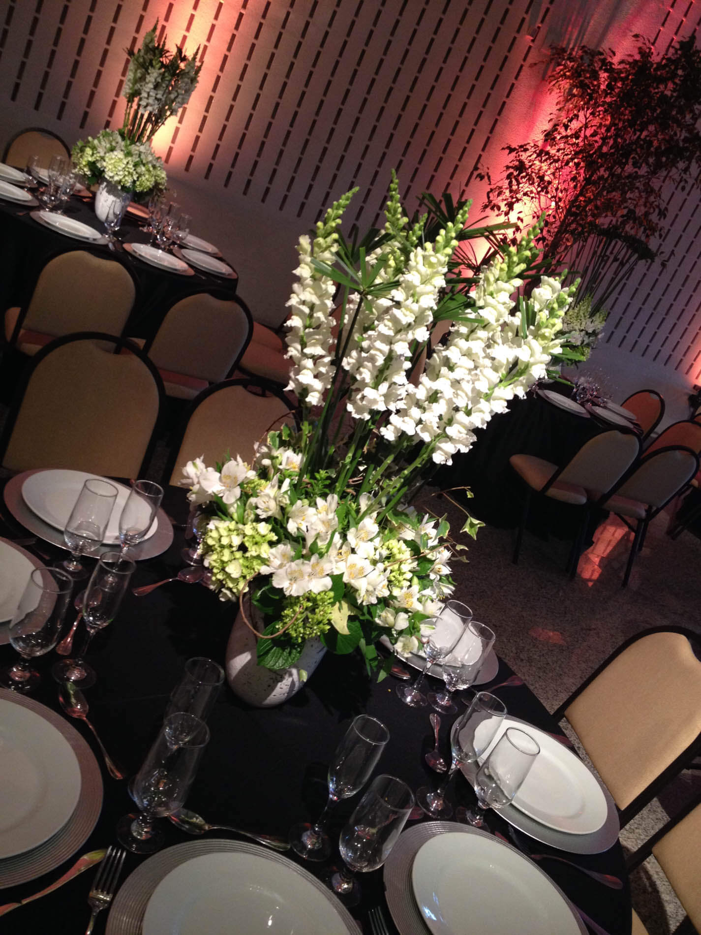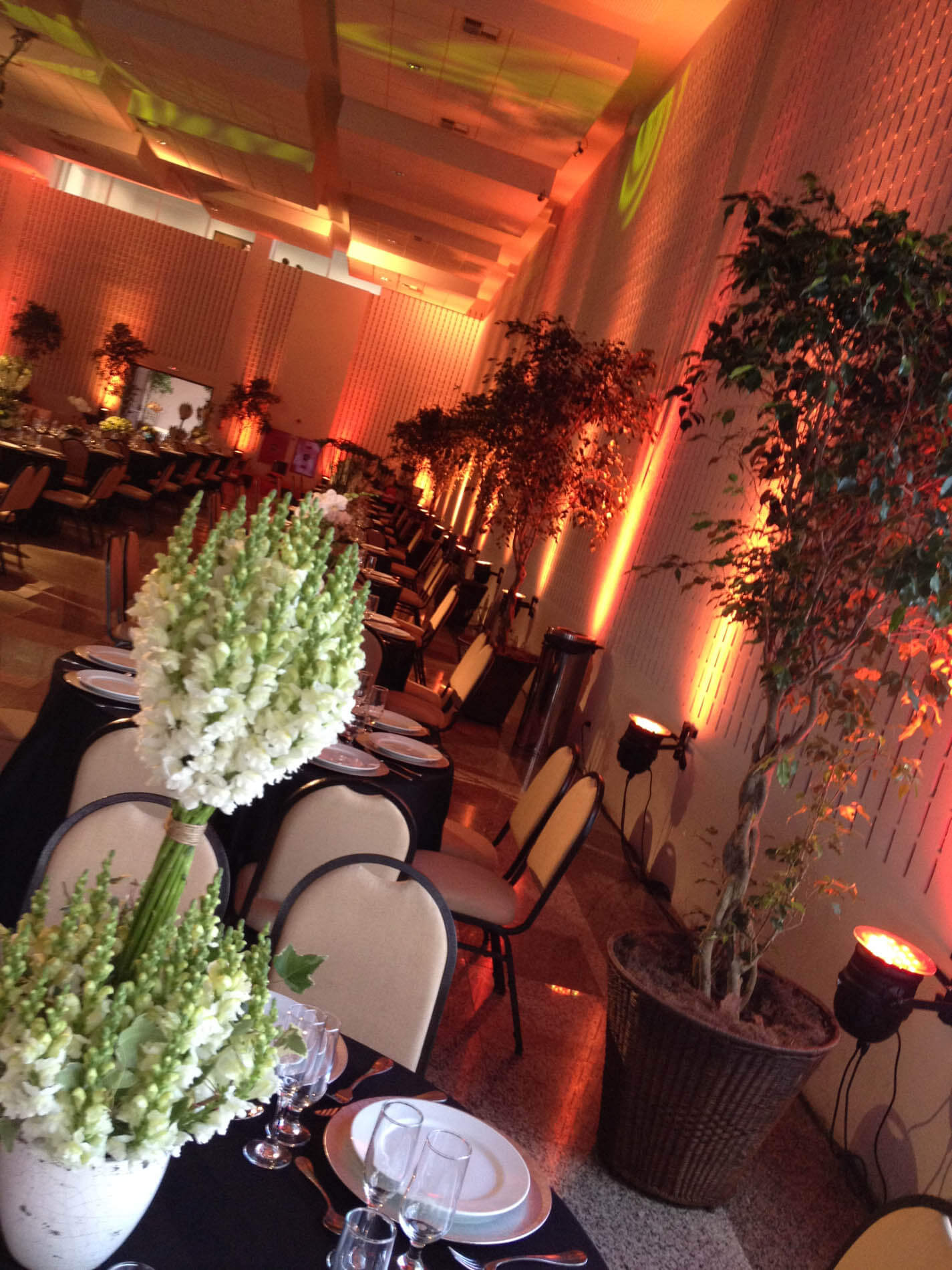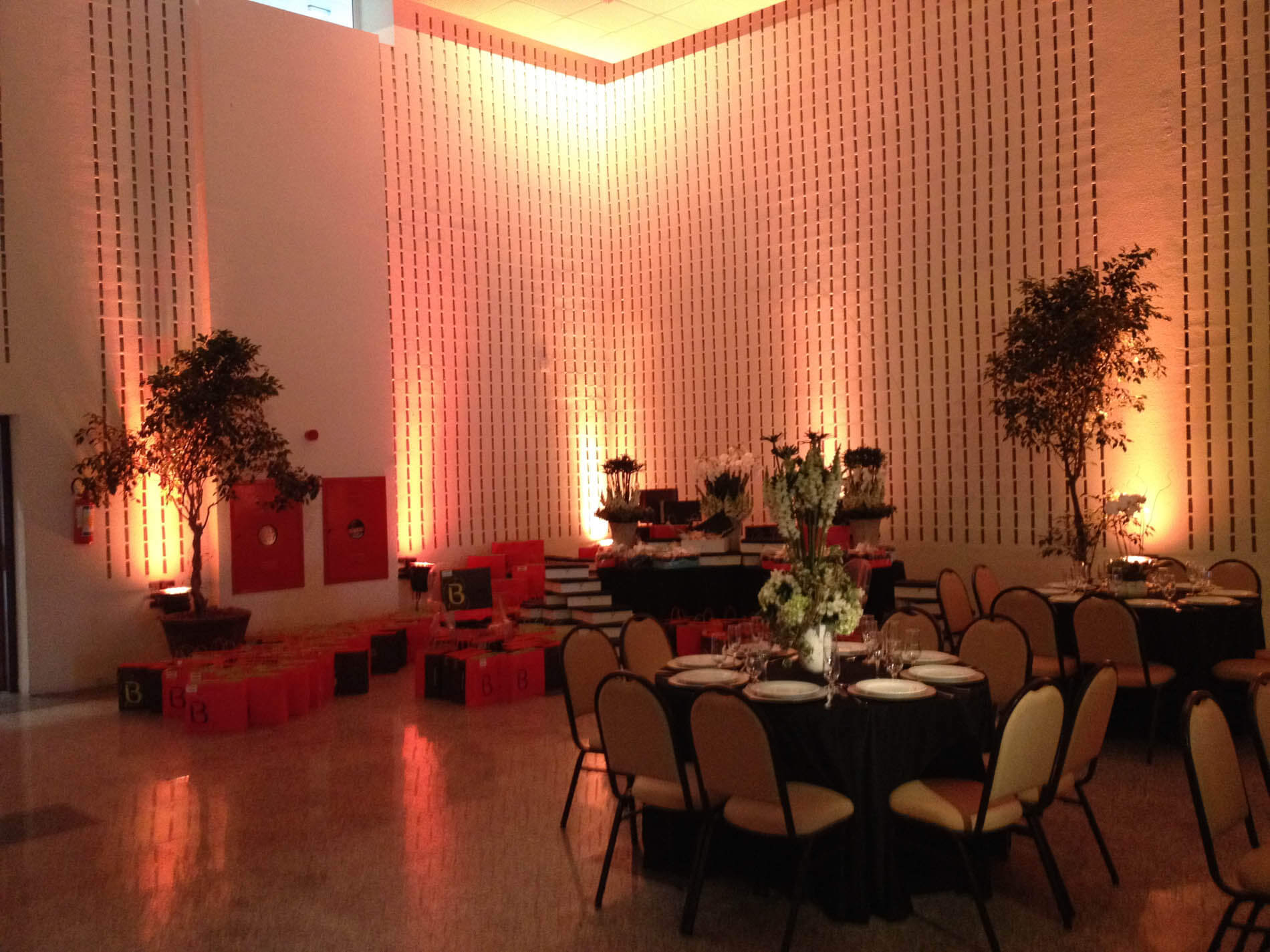 Tem como proposta única e exclusiva a distribuição do layout para acomodação de toda equipe de convidados, em que a decoração, a iluminação, as texturas e as tonalidades devem harmonizar com o marketing da empresa, além da seleção de buffet e bebidas... As flores e seus arranjos são cuidadosamente montados, pois exercem nessa arquitetura de interiores fundamental estrutura.